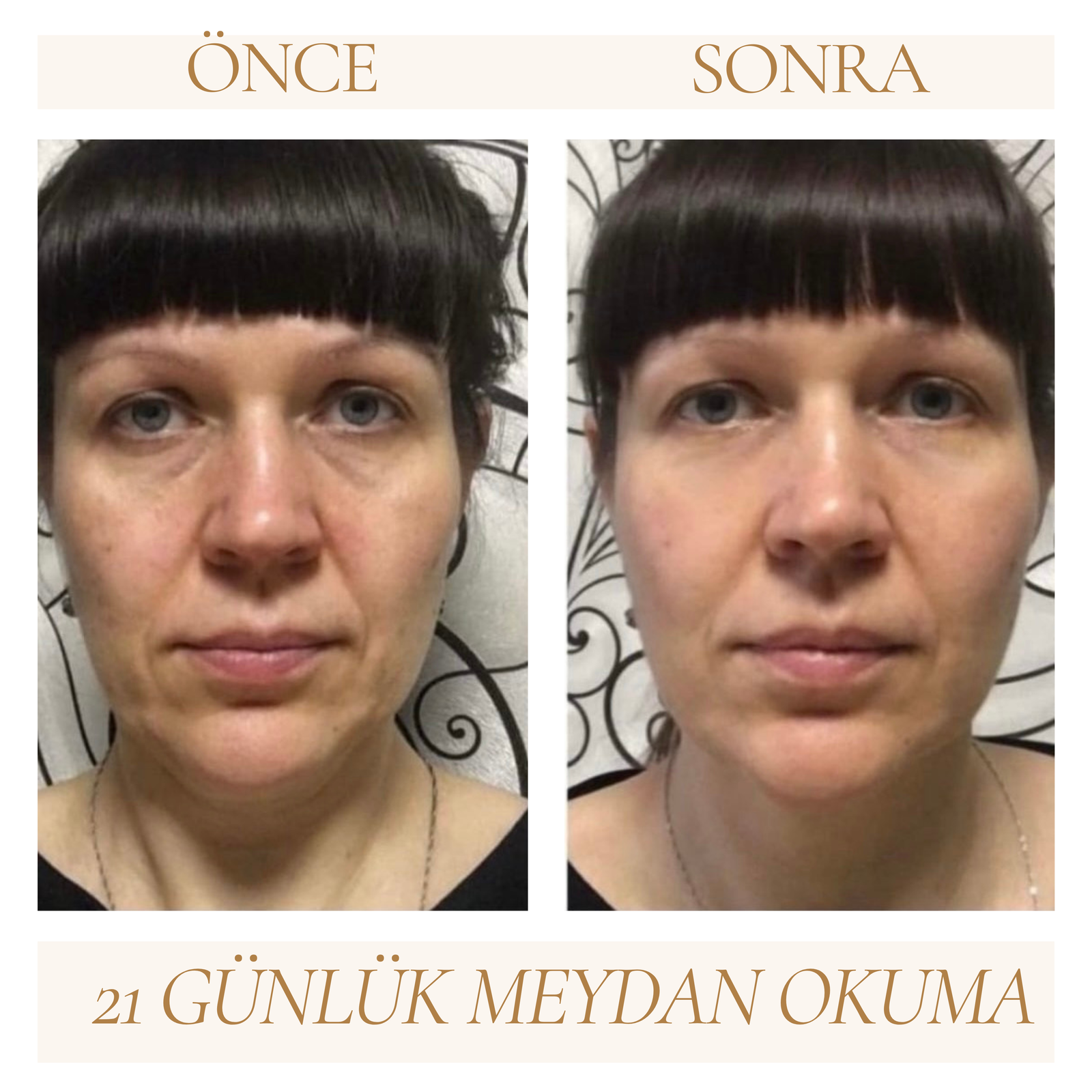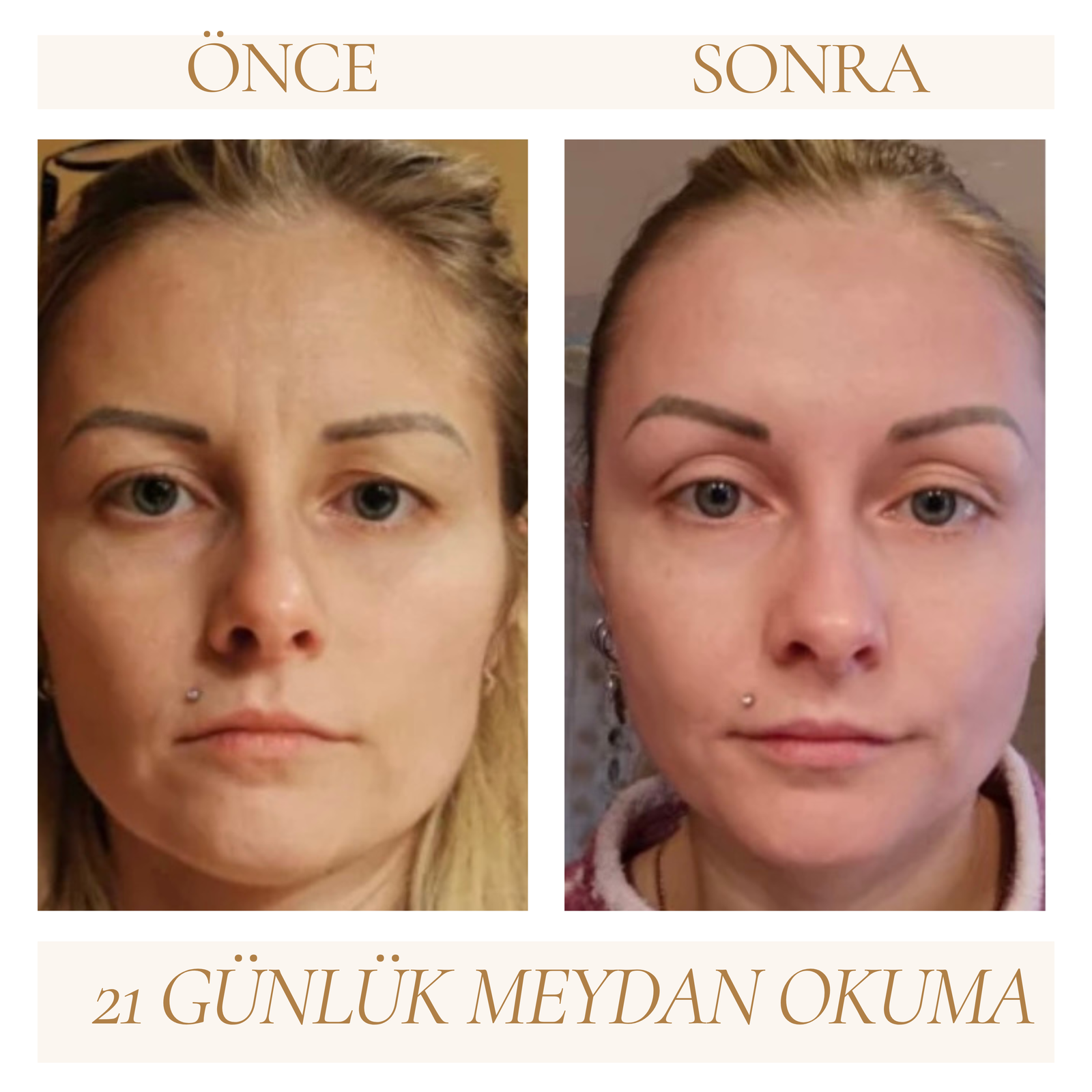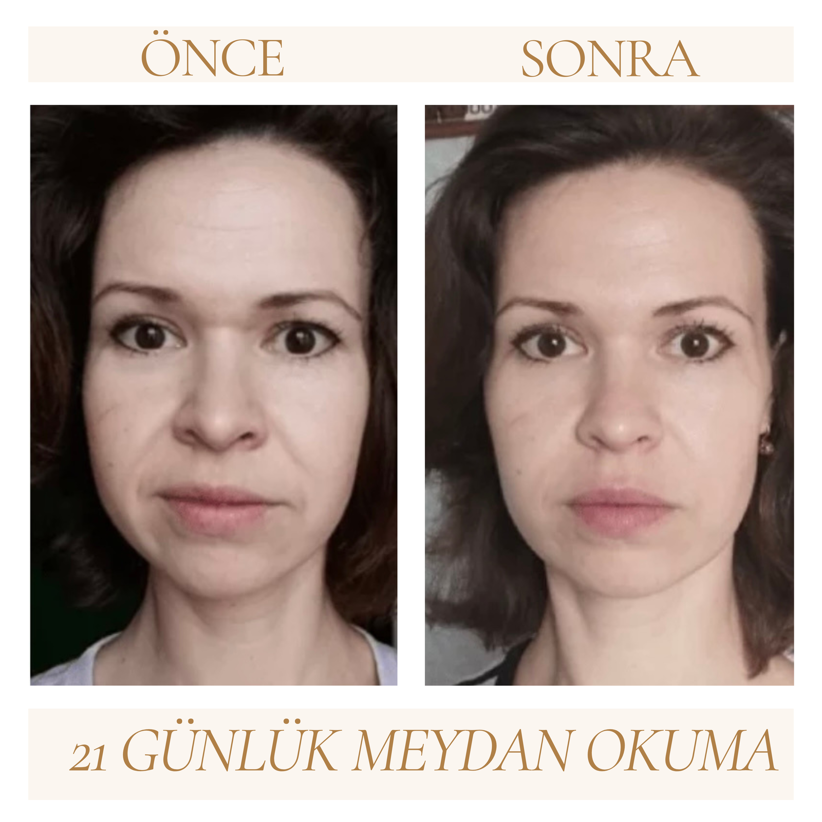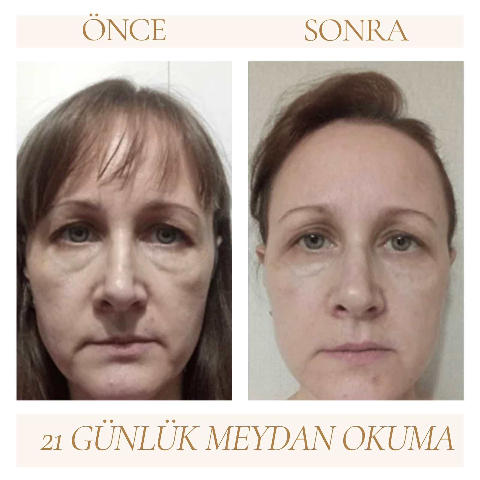 "Sadece 3 haftada alnımdaki kırışıklıkları azaltmayı, göz kapaklarımdaki sarkmaları gidermeyi ve göz altı torbalarımı iyileştirmeyi başardım!"