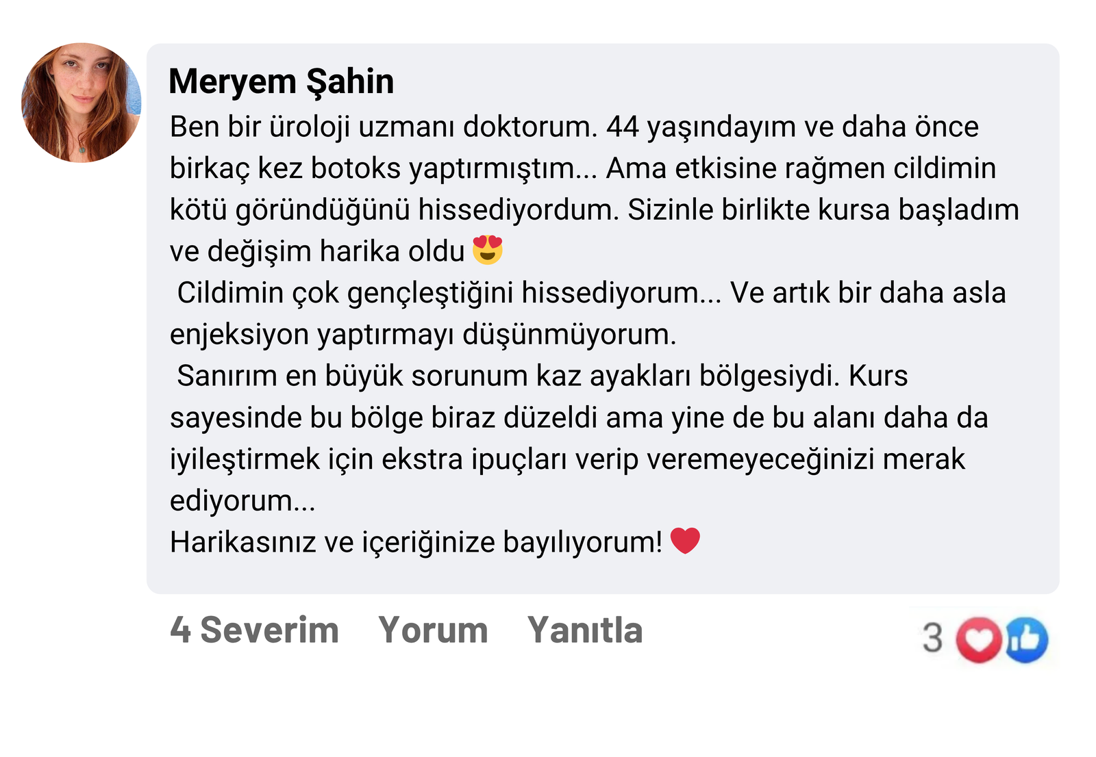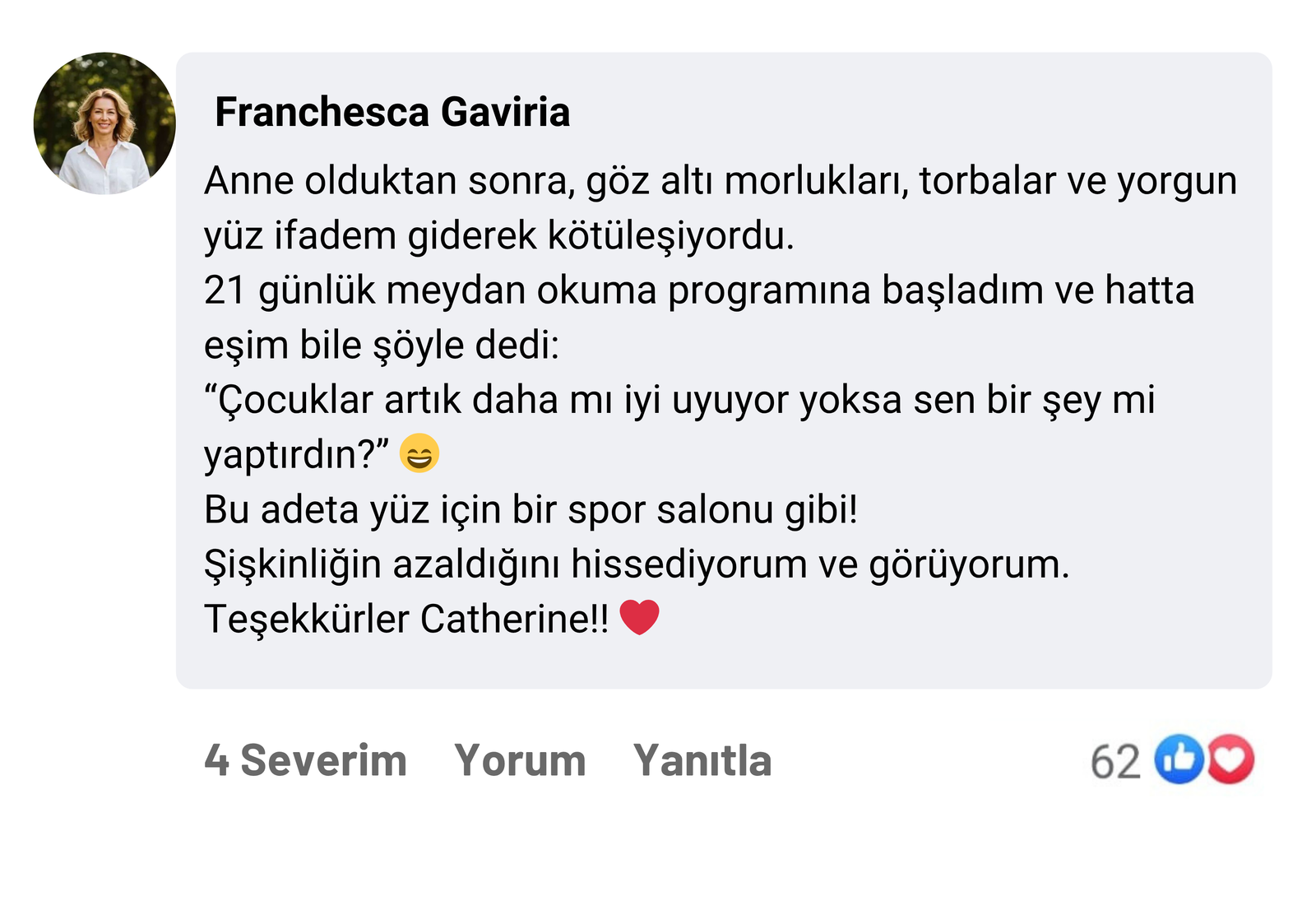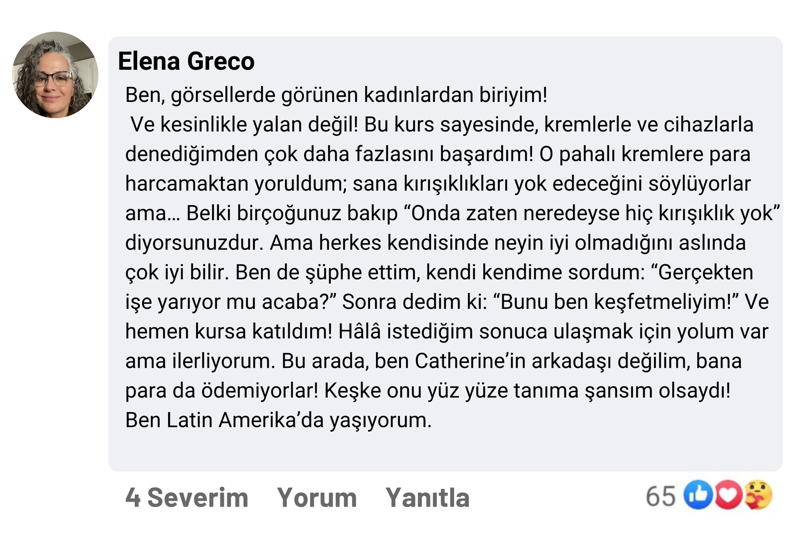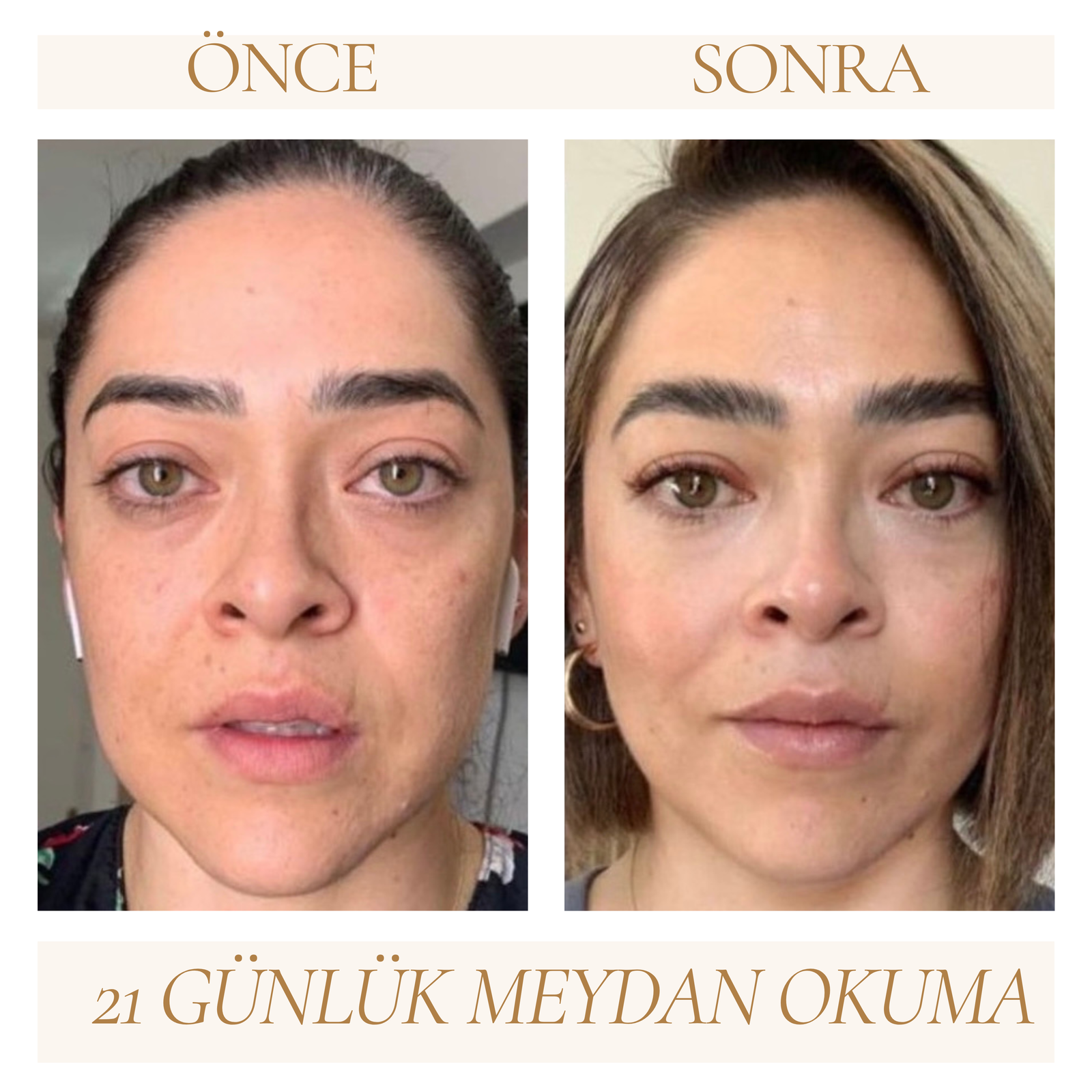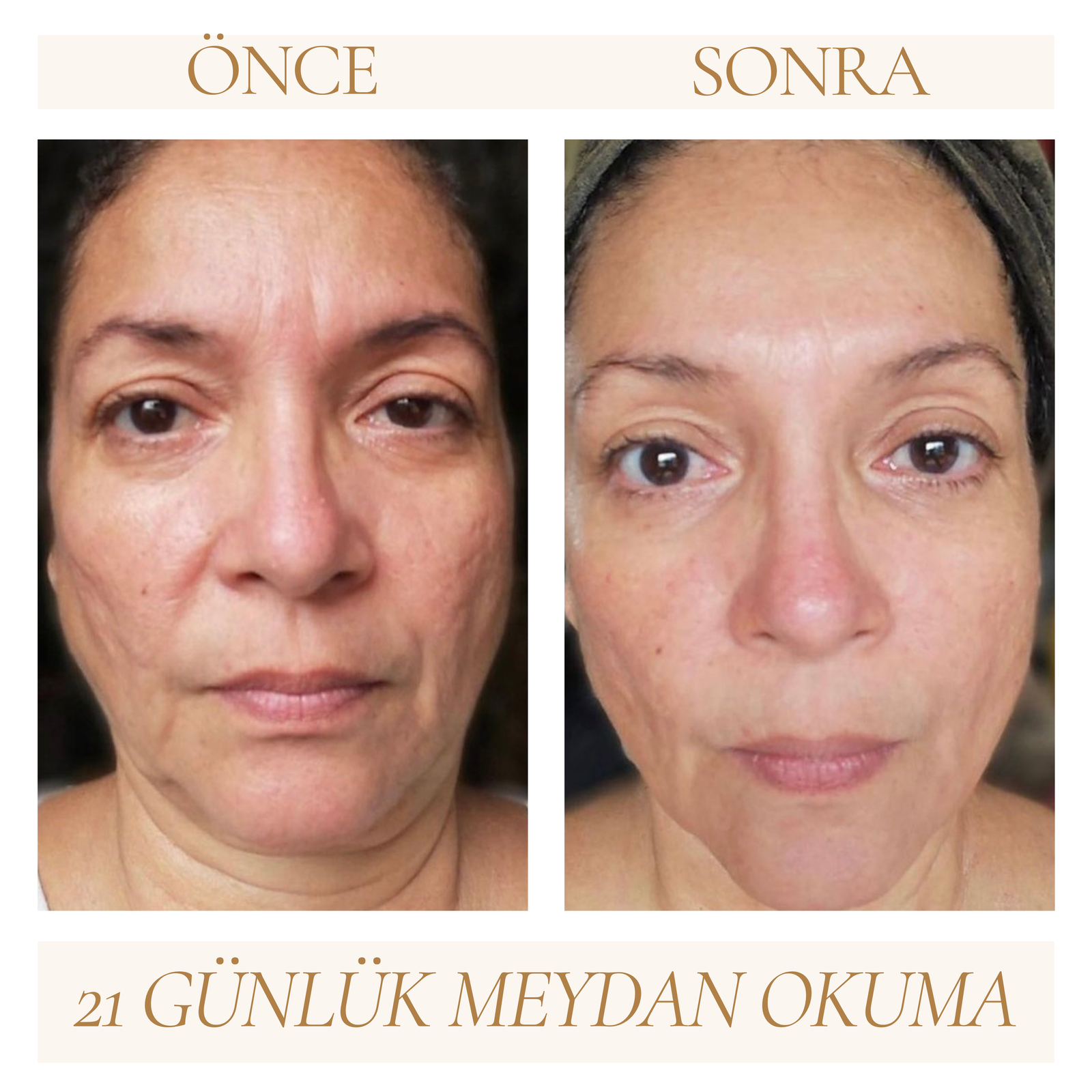 "Sadece 3 haftada alnımdaki kırışıklıkları azaltmayı, göz kapaklarımdaki sarkmaları gidermeyi ve göz altı torbalarımı iyileştirmeyi başardım!"