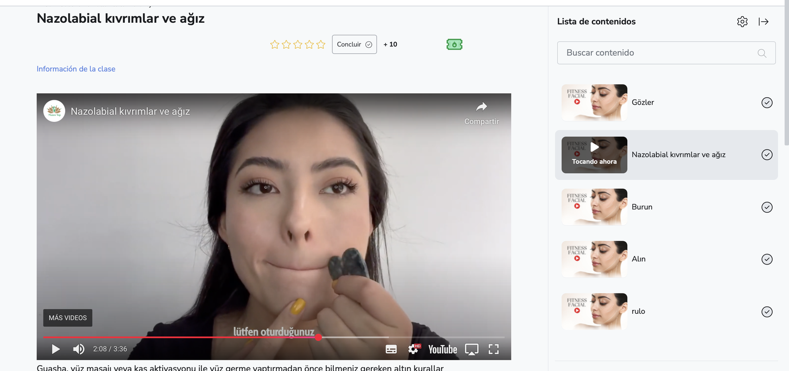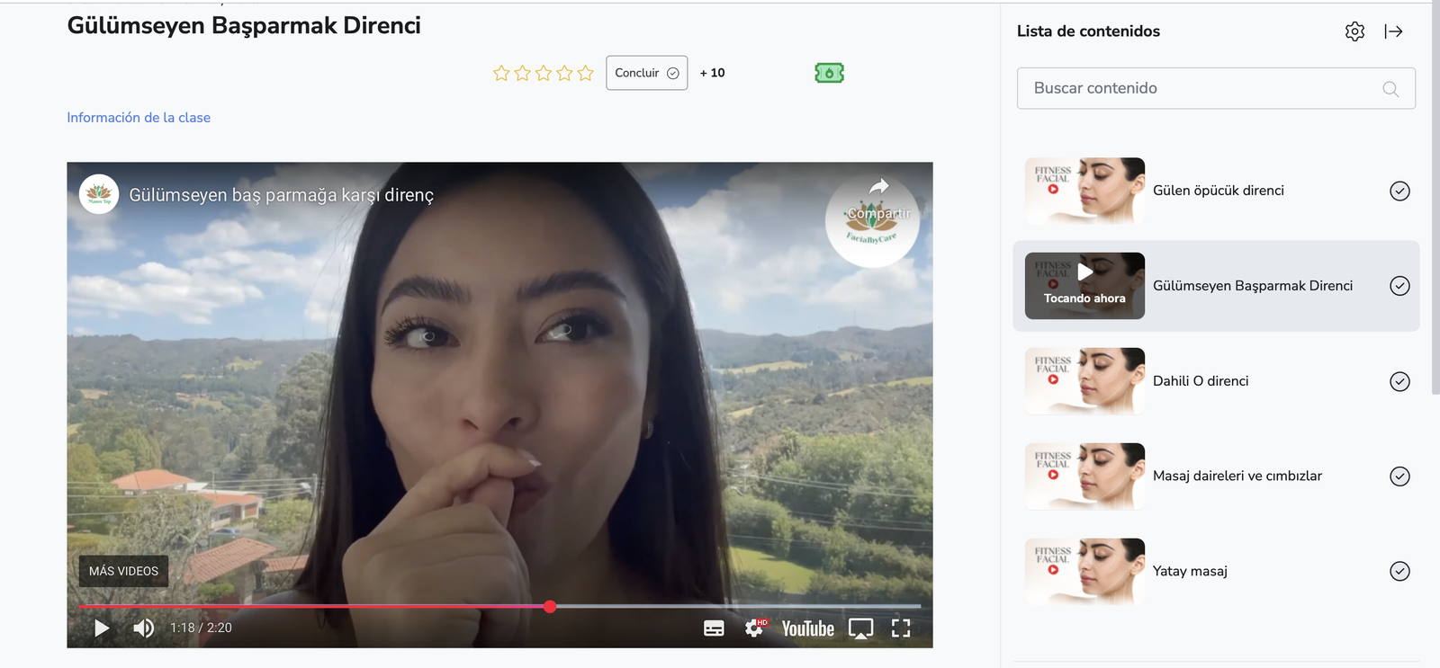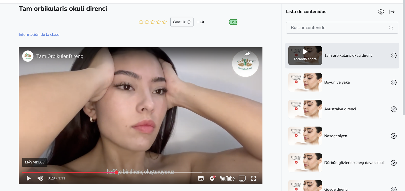 Çift çene, ifade çizgileri, nazolabial kıvrımlar ve koyu halkalar gibi belirli bölgeleri tedavi etmek için özel egzersizler öğreneceksiniz.