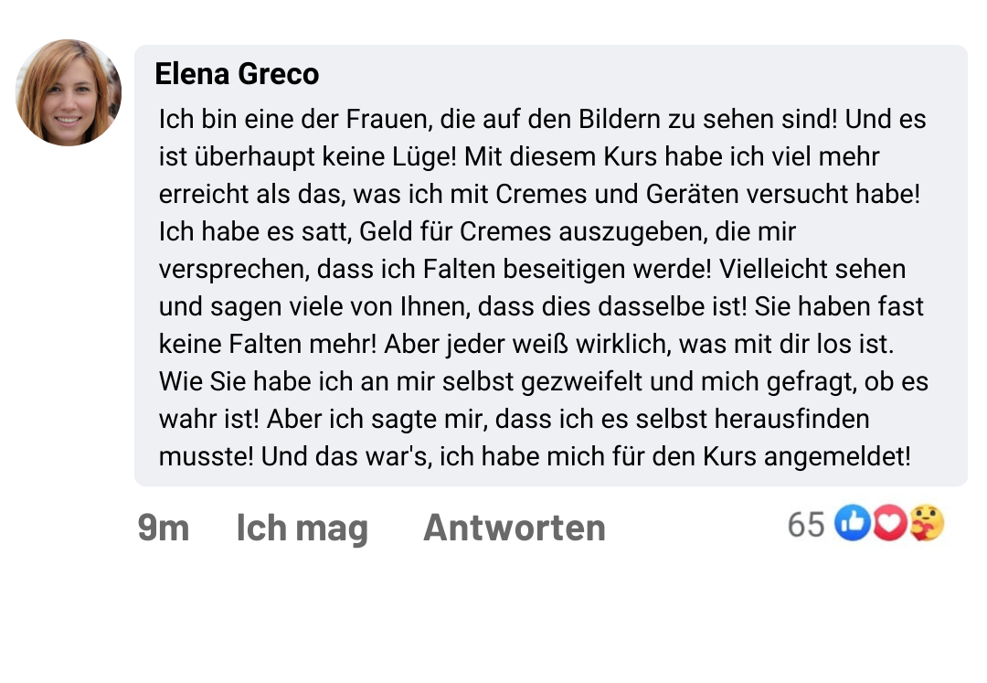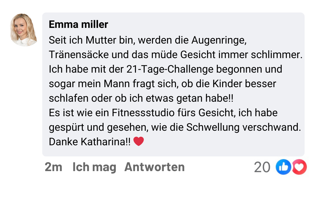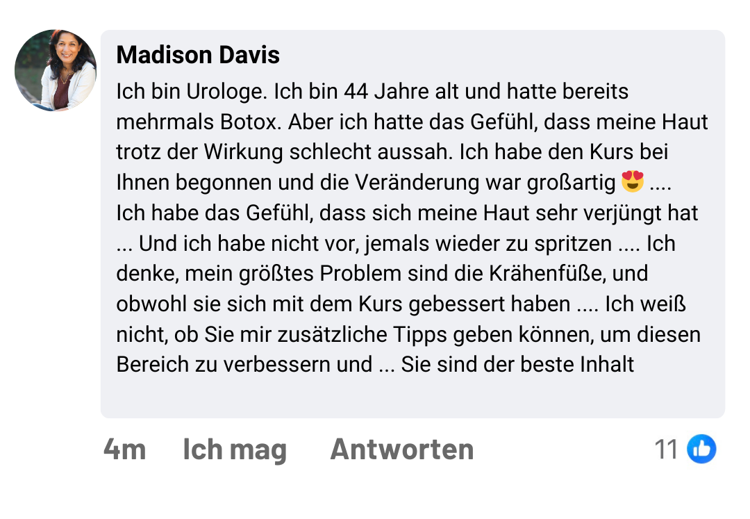 „In nur 3 Wochen habe ich es geschafft, Falten auf meiner Stirn zu reduzieren, Schlupflider und Tränensäcke zu verbessern!“
