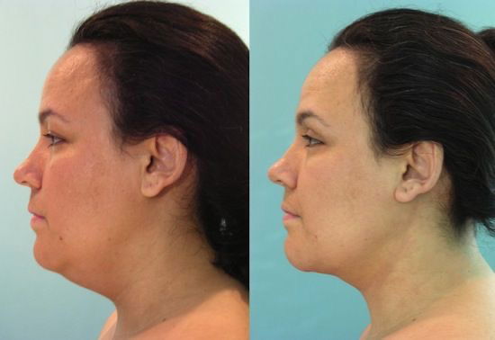Reduziert sichtbar das Doppelkinn, wodurch ein stilisierteres Profil entsteht, strafft die Haut unter dem Kinn für eine definiertere Kontur.