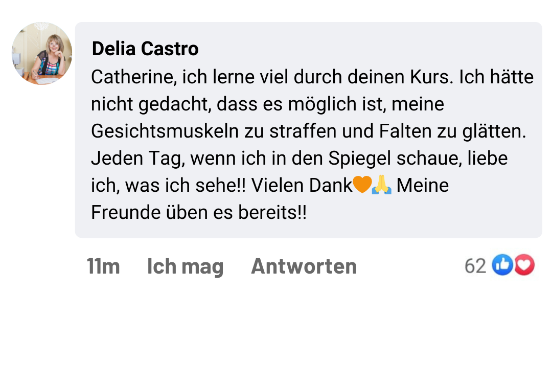 Unsere Expertin Catherine Alejo, Spezialistin für Yoga und Gesichtsfitness, mit 10 Jahren Erfahrung, wird Sie durch diesen hervorragenden Videokurs begleiten. All dieses Wissen wird nun in einem praktischen Kurs für Sie gesammelt, der so konzipiert ist, dass Sie vom ersten Tag an Ergebnisse erzielen.