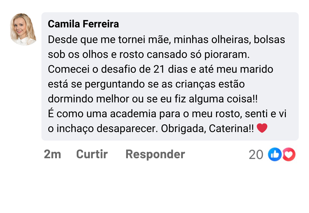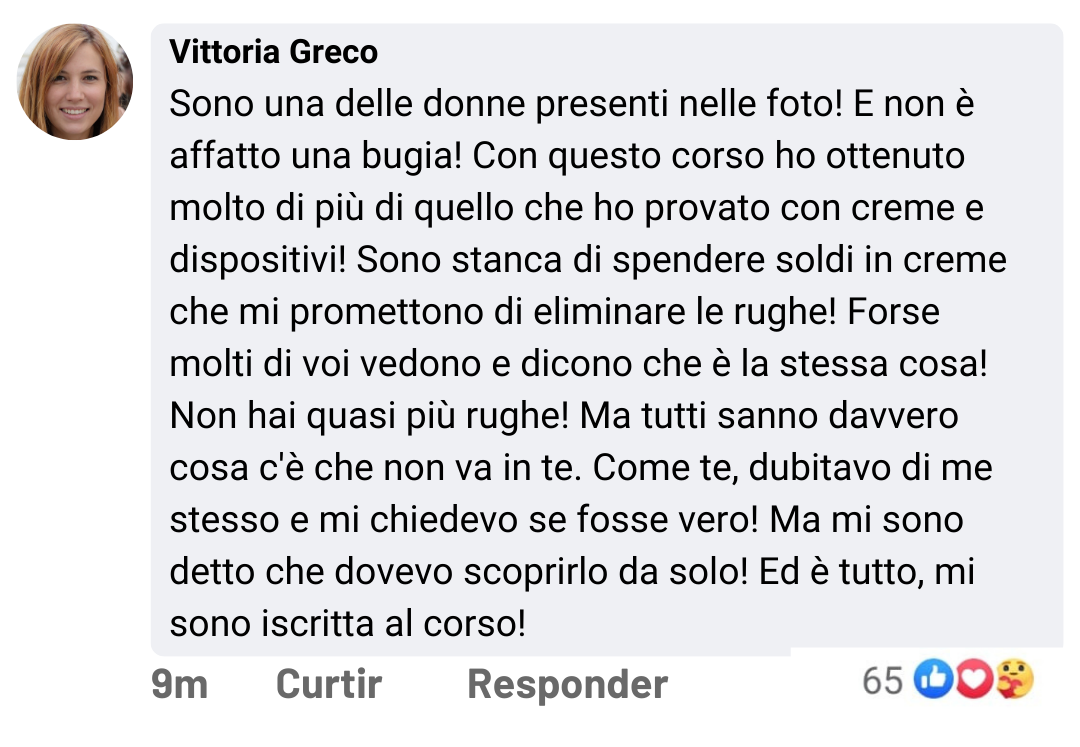 "Em apenas 3 semanas consegui reduzir as rugas da minha testa, melhorar a flacidez das pálpebras e as bolsas sob os olhos!"