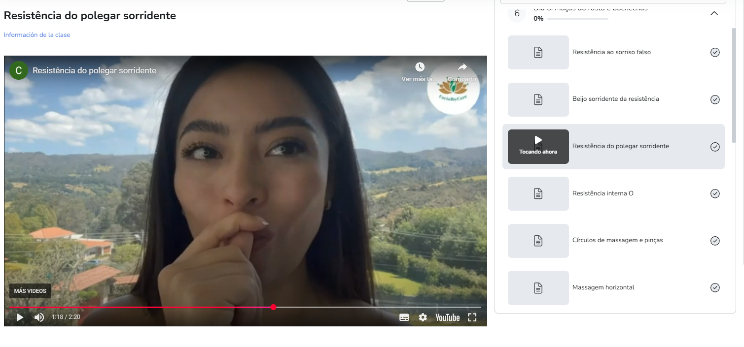 Você aprenderá exercícios específicos para tratar áreas específicas, como papada, linhas de expressão, sulcos nasolabiais e olheiras.