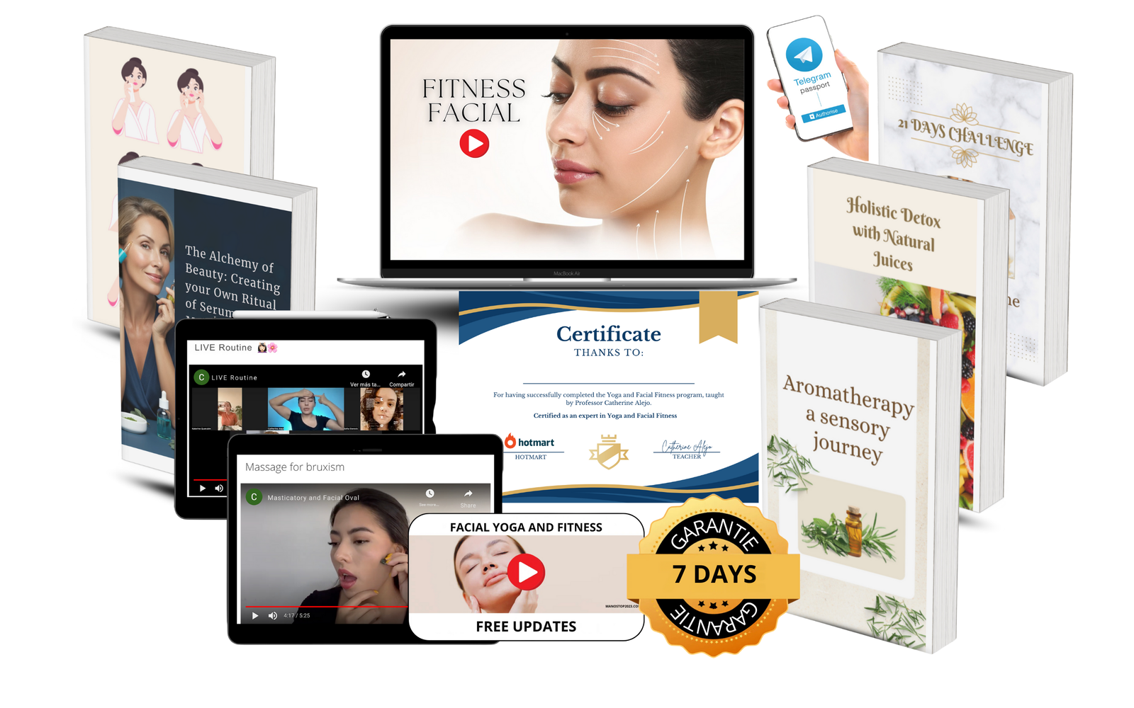 Our expert Catherine Alejo, a specialist in Yoga and Facial Fitness with 10 years of experience, will be the one to guide you through this excellent video course. All this knowledge is now gathered for you in a practical course, designed to help you achieve results from day one.