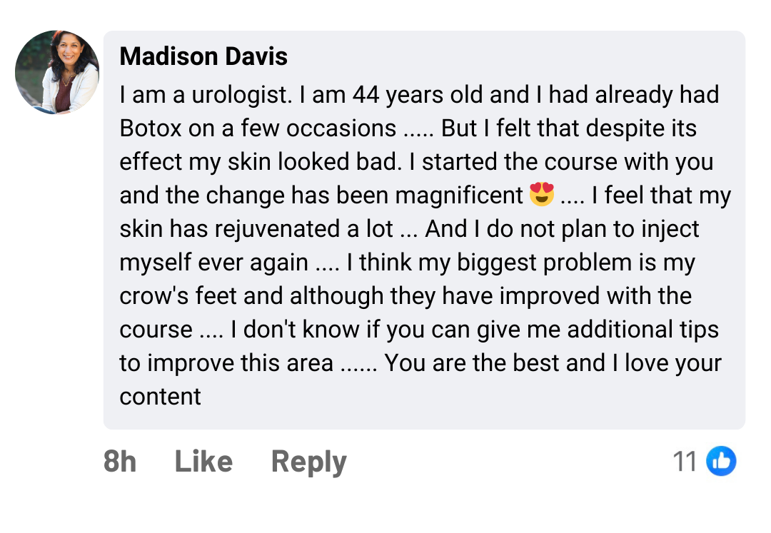 "In just 3 weeks I managed to reduce the wrinkles on my forehead, improved my drooping eyelid and bags under my eyes!"