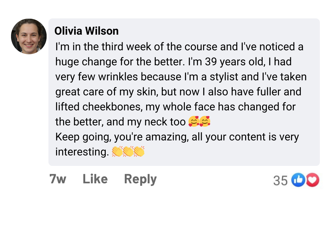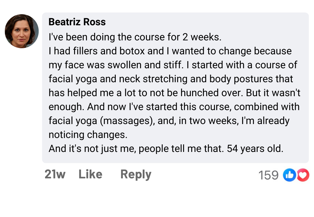 She has created a transformative program that combines resistance exercises, facial massages, lymphatic drainage and a comprehensive approach to emotional well-being. Thanks to her experience, she has helped hundreds of people tone their face, improve the health of their skin and raise their self-esteem, obtaining visible and long-lasting results.