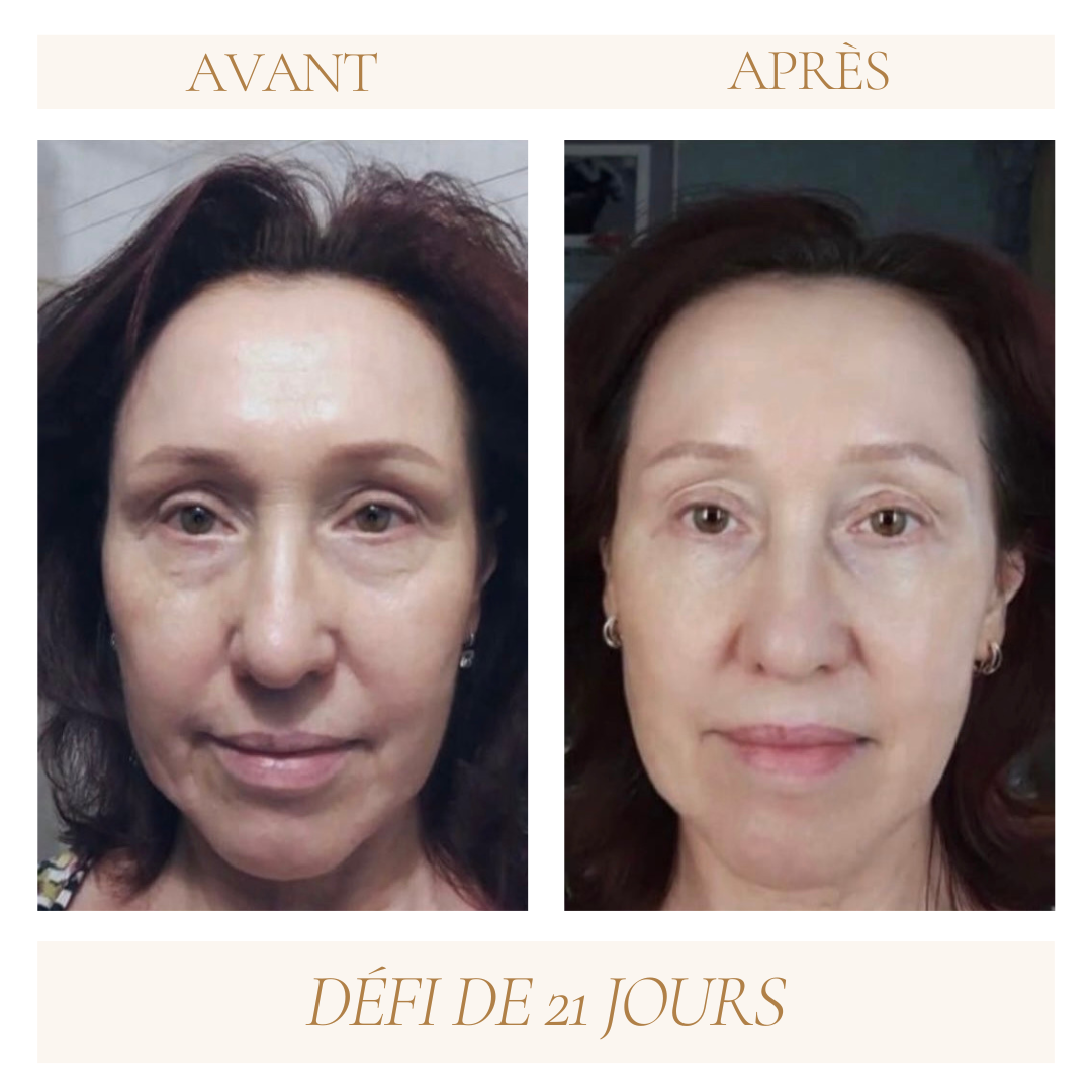 En seulement 3 semaines, j'ai réussi à réduire les rides de mon front, à améliorer mes paupières tombantes et à améliorer les poches sous mes yeux !