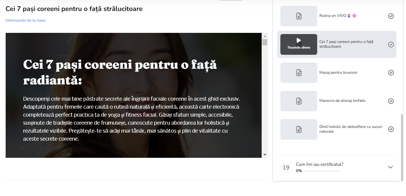Ceea ce veți învăța nu vă va transforma doar fața, ci vă va permite și să vă bucurați de o experiență profundă de îngrijire de sine, încredere și bunăstare. Este mai mult decât un curs; Este un cadou pentru tine.
