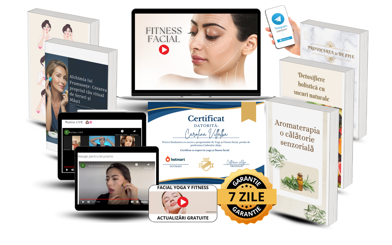 Experta noastra Catherine Alejo, specialista in Yoga si Fitness Facial, cu o experienta de 10 ani, va fi cea care va va lua de mana prin acest curs video excelent. Toate aceste cunoștințe sunt acum adunate pentru tine într-un curs practic, conceput astfel încât să obții rezultate din prima zi.